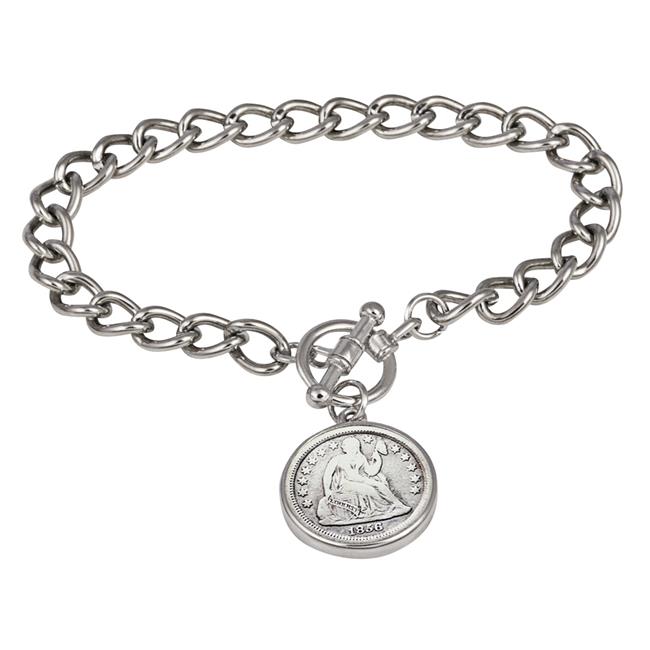 UPM Global 15314 7 in. Silver Seated Liberty Dime Silvertone Coin Toggle Bracelet