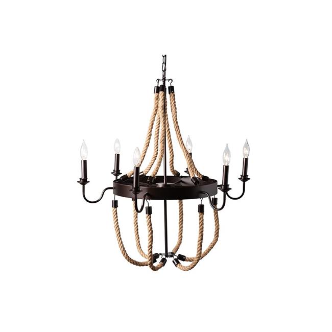 Baxton Studio EVEN1015 Cassia Vintage Industrial Antique Style Hemp & Dark Bronze Metal 6 Light Chandelier