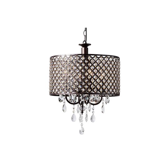Baxton Studio EVEN1027 Gitana Modern & Contemporary Dark Bronze Metal & Crystal 4-Light Drum Pendant Light Chandelier