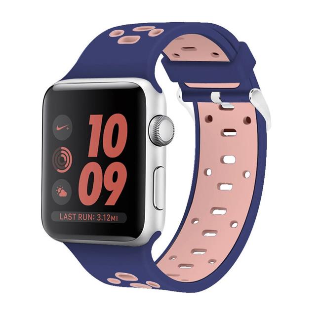 Tech Elements EW-AWPSP42-BLPK 42 mm Breathable Silicone Sport Band for Apple Watch - Blue with Pink