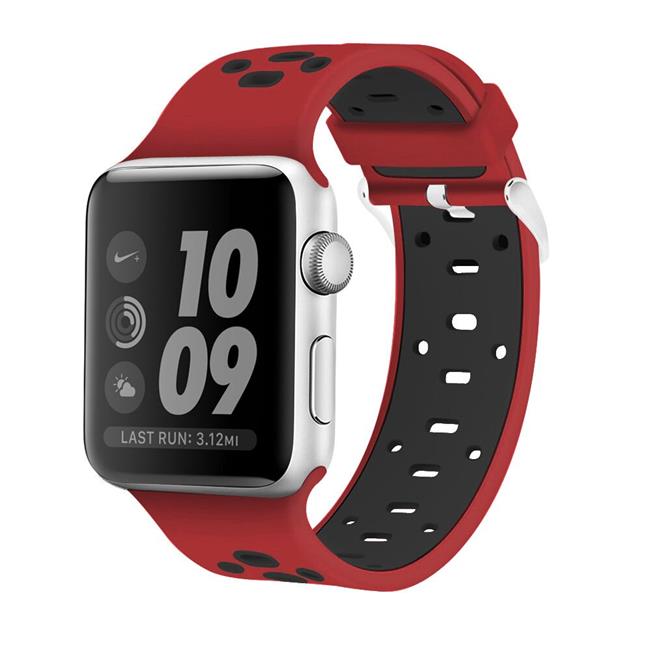 Tech Elements EW-AWPSP38-BR 38 mm Breathable Silicone Sport Band for Apple Watch - Red with Black