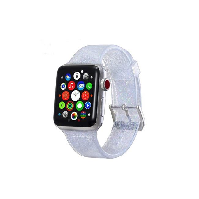 Tech Elements EW-AWGT142-SV 42 mm Silicone Bling Glitter Band with Buckle Closure Version for Apple Watch - Silver