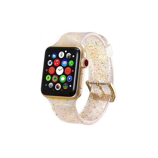 Tech Elements EW-AWGT142-GD 42 mm Silicone Bling Glitter Band with Buckle Closure Version for Apple Watch - Gold