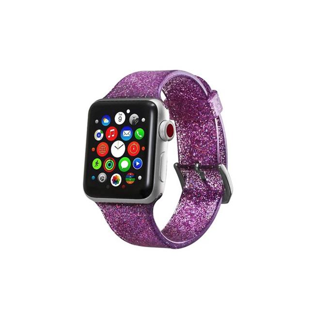 Tech Elements EW-AWGT138-PL 38 mm Silicone Bling Glitter Band with Buckle Closure Version for Apple Watch - Purple