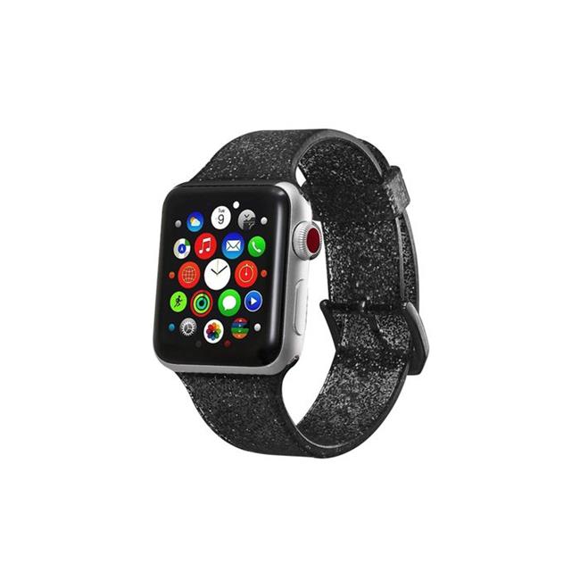 Tech Elements EW-AWGT142-BK 42 mm Silicone Bling Glitter Band with Buckle Closure Version for Apple Watch - Black