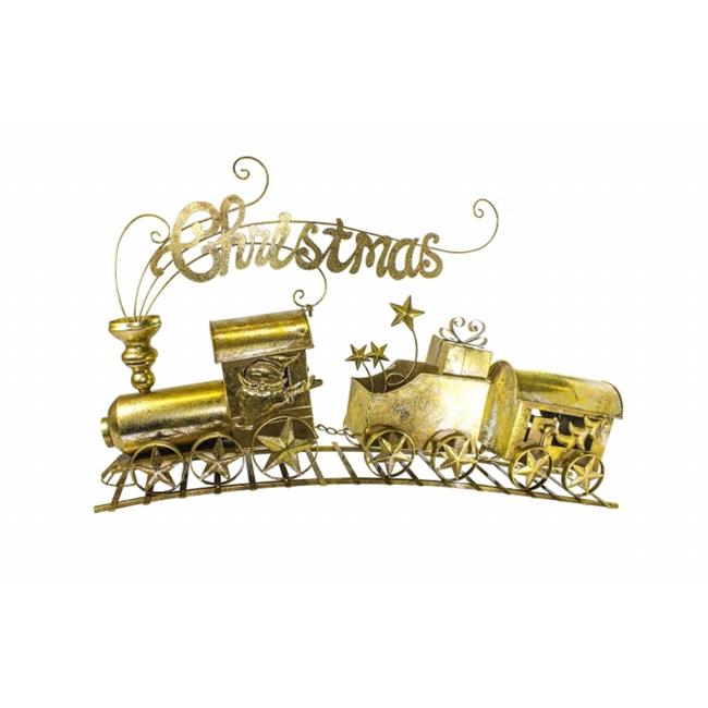 Queens of Christmas WL-TRN-30-GO 30 in. Gold 3 Car Metal Train Set