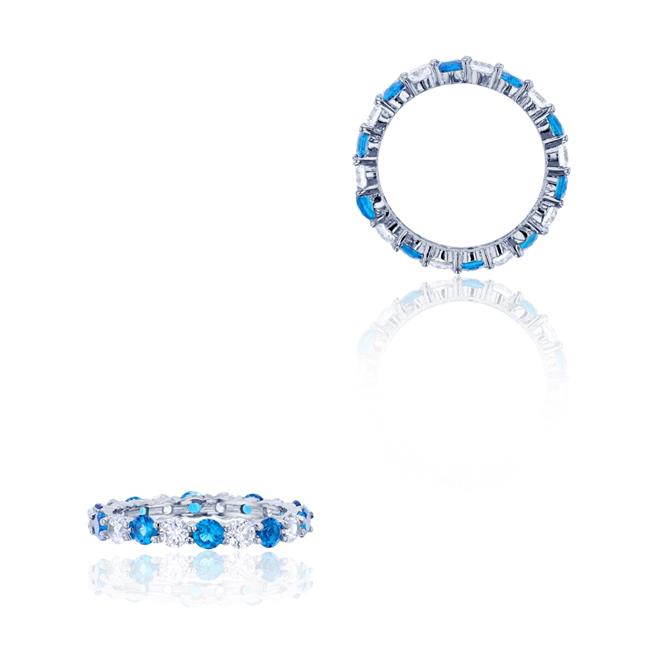 YGI SWB155W2OW-10 Sterling Silver 3 mm. Round Alternating Swiss Blue Topaz & White Cubic zirconia Prong Set Eternity Band Ring - 10