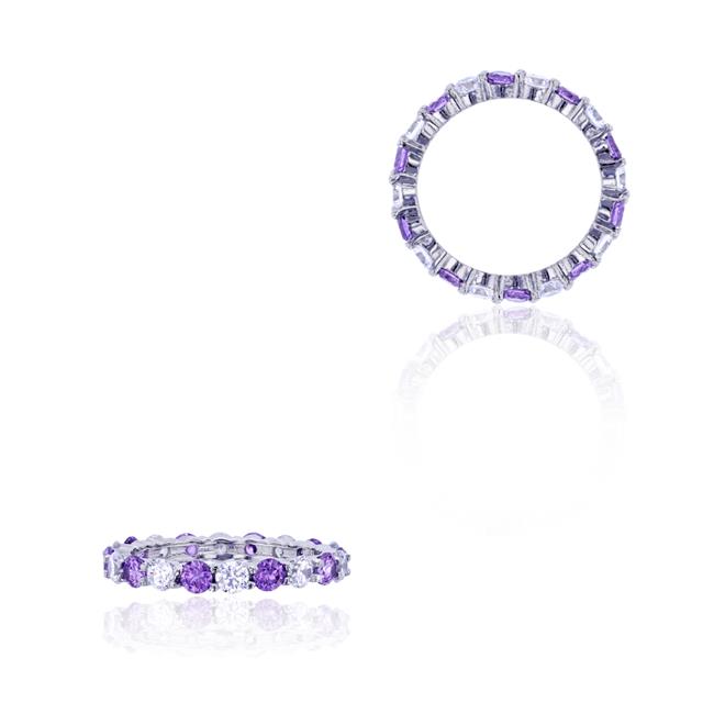 YGI SWB155W2DW-10 Sterling Silver 3 mm. Round Alternating Amethyst & White Cubic zirconia Prong Set Eternity Band Ring - 10