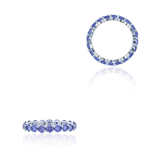 YGI SWB155W2J-10 Sterling Silver 3 mm. Round Tanzanite Cubic zirconia Prong Set Eternity Band Ring - 10