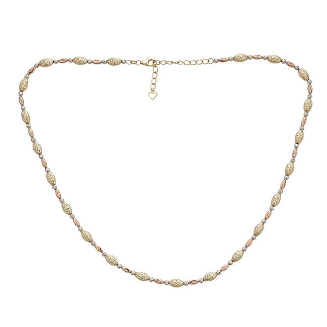 YGI FMB4071T-7.5 14k Gold Tri-Color Diamond Cut Rice Bead 7.5 in. Bracelet with 1 in. Extender