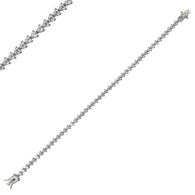 YGI SZB4068W2W-7 Sterling Silver Rhodium 3 mm. Heart Cut Tennis Bracelet - 7 in.