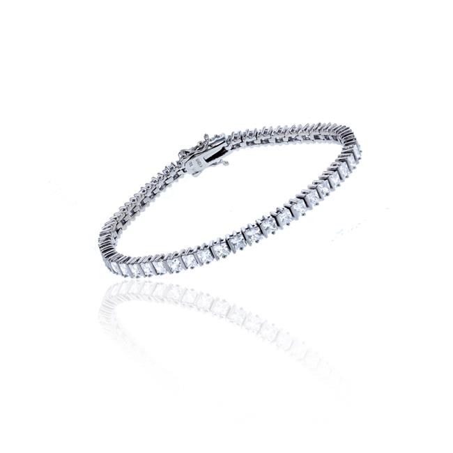 YGI SZB4001W2W-7 Sterling Silver Rhodium 3 mm. Princess Cut Tennis Bracelet - 7 in.