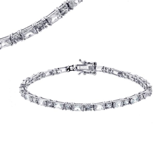 YGI SZB4075W2W-7.5 Sterling Silver Rhodium Bezel & Baguette 10 mm. Tennis Bracelet - 7.5 in.