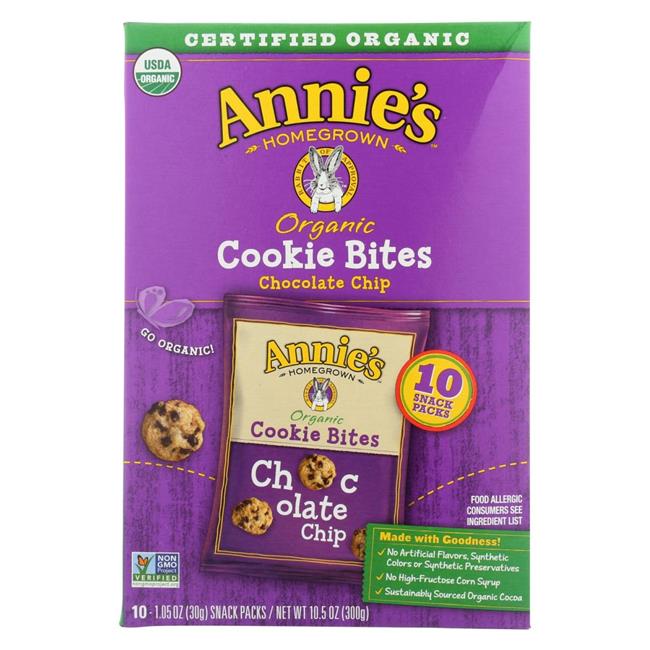 Annies Homegrown 2100634 Organic Chocolate Chip Cookie Bites, 10 Count - Case of 6