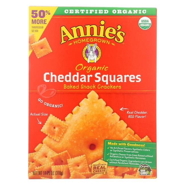 Annies Homegrown 2203834 11.25 oz Organic Baked Snack Crackers Cheddar Squares - Case of 6